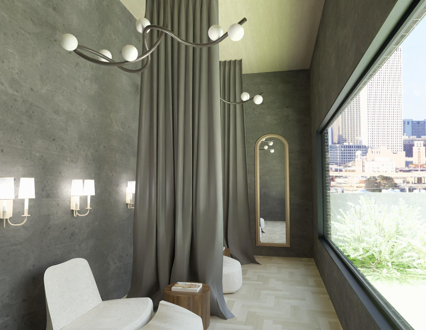 This commercial rental space was reimagined for a luxe medical practice. I developed the Cocoon concept, using a dark, refined palette to evoke the butterfly’s transformation—an elegant metaphor for renewal and elevated care.